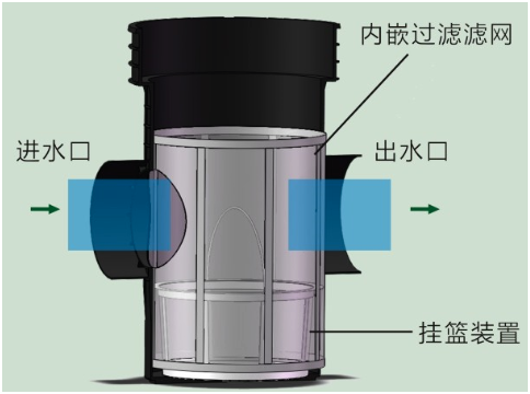 2、清理时,只需在地面拉起不锈钢提篮过滤网,即可方便清理过滤产生的污染物;